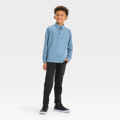 Elevate your kid’s casualwear wardrobe with this Long-Sleeve Polo Shirt from Cat & Jack™. Made from a lightweight, shrink-resistant fabric, this long-sleeve polo shirt offers them all-day cozy comfort. It’s designed with a collared neckline with a three-button placket for classic style, while a chest pocket lends it a dressier vibe. Designed in a heather finish with ribbed cuffs for a neat look, they can pair it with anything from straight-fit trousers and jogger pants to jeans, skirts or shorts for versatile outfit options.