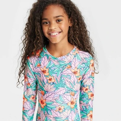 Add tropical style to their sunny weather closet with this Floral Print One-Piece Swimsuit from Cat & Jack™. The sun-smart UPF 50+ rating keeps your child well shielded from harmful rays, while the back half-length zipper closure makes for ease of wear. Fashioned in an allover floral print for a cute-as-can-be look, just add flip-flops and a bucket hat for a complete ensemble.
